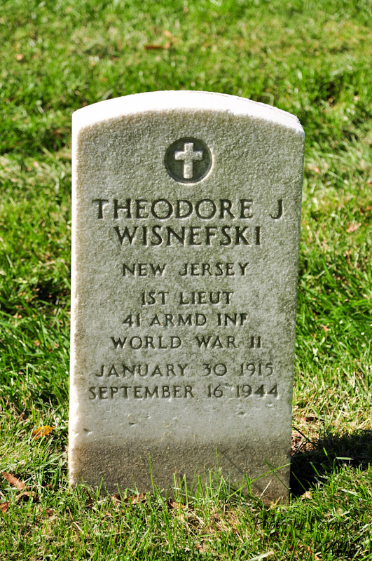 Theodore J. Wisnefski was born on January 30, 1915. He served in the 41st Armored Infantry Regiment, 2nd Armored Division, as a First Lieutenant during World War II. He died on September 16, 1944, at the age of 29, and is now buried in the Arlington National Cemetery, Arlington, Arlington County, Virginia, USA. 1Lt Wisnefski was one of the 65 soldiers killed in battle during the liberation of the Limburg region of the Netherlands and Belgium.