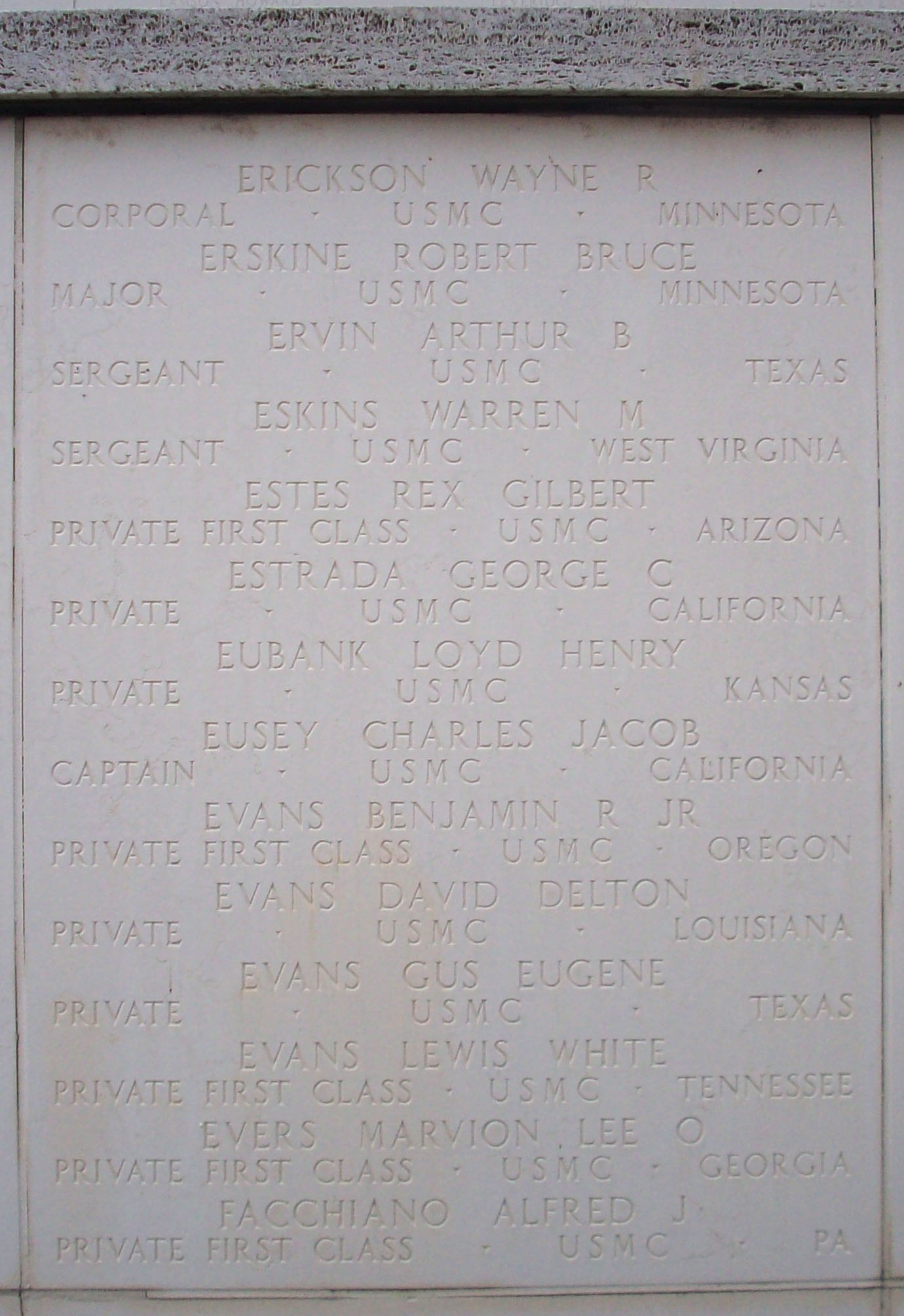 He served in Company K, 3rd Battalion, 9th Marine Regiment, 3rd Marine Division as a Private First Class during World War II. He died from his wounds received in battle on July 23, 1944, during the Battle for Guam. He has a cenotaph at
