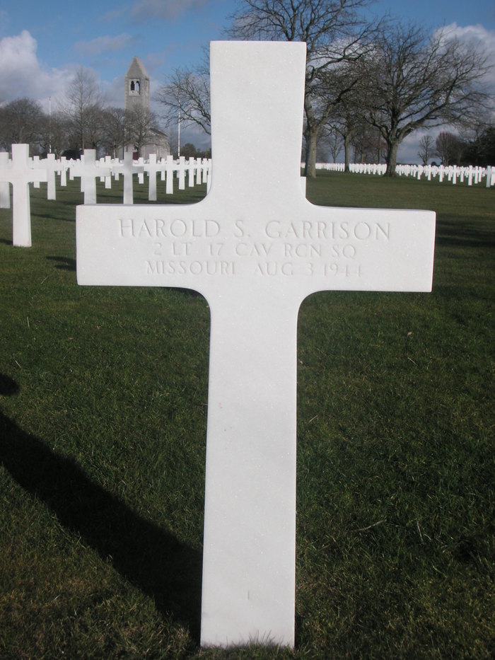 He served in the 17th Cavalry Reconnaissance Squadron, as a Second Lieutenant during World War II. He was Killed in Action on August 3, 1944, during the liberation of Dol-de-Bretagne. He was awarded the Purple Heart and was buried at Brittany American Cemetery and Memorial, Saint-James, Departement de la Manche, Basse-Normandie, France.