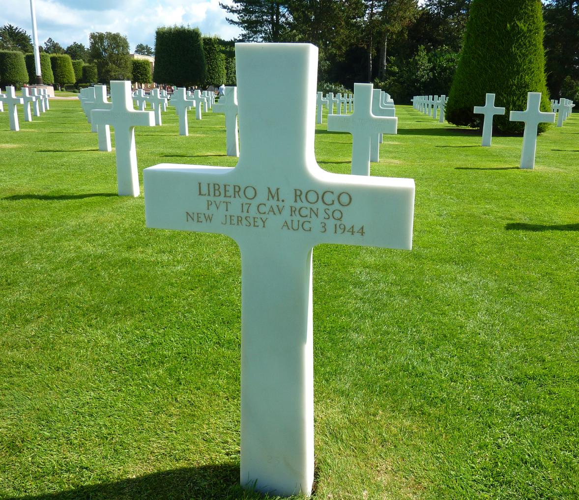 Libero Marko Rogo was born on June 22, 1912, in Old Forge, Lackawanna County, Pennsylvania. He served in the 17th Cavalry Reconnaissance Squadron, as a Private during World War II. He was Killed in Action on August 3, 1944, when his platoon was ambushed by the Germans in the hamlet of Les Rolandières, in the town of Dol-de-Bretagne in Brittany, France. He was awarded the Purple Heart and was buried at Normandy American Cemetery and Memorial, Colleville-sur-Mer, Departement du Calvados, Basse-Normandie, France.