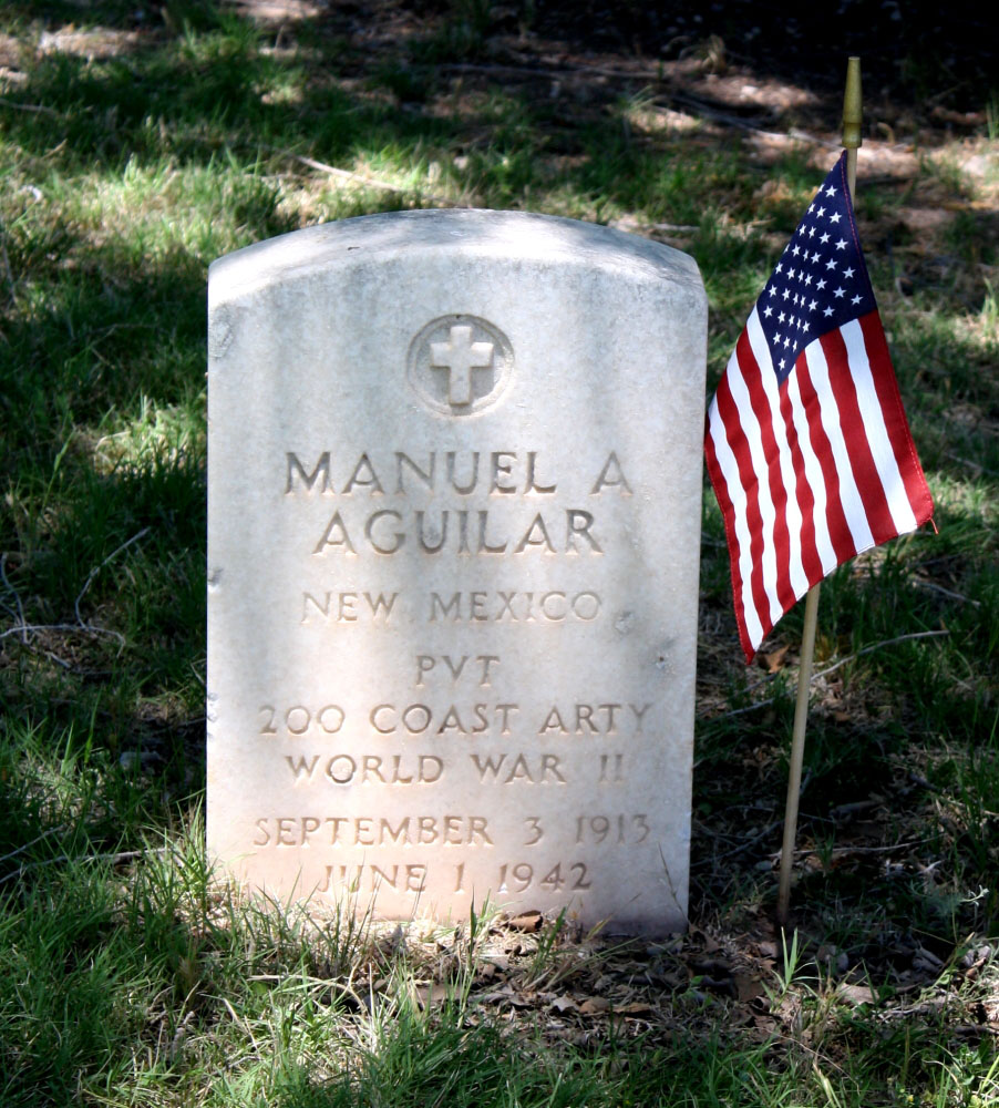 Pvt Aguilar was among the American soldiers who lost their lives in captivity on June 1, 1942. He is now buried in the Woodbine Cemetery, Artesia, Eddy County, New Mexico, USA.