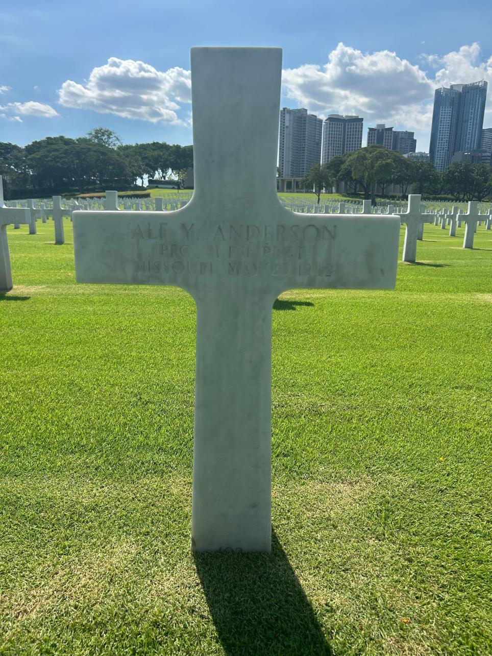 PFC Anderson was among the American soldiers who lost their lives in captivity on May 25, 1942. He is now buried in the Manila American Cemetery and Memorial, Manila, Capital District, National Capital Region, Philippines.