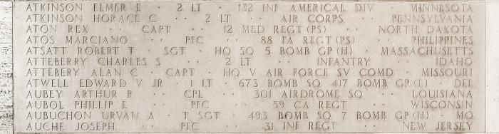 PFC Auche was reported missing and officially declared dead on May 25, 1942. His name is memorialized in the Walls of the Missing in the Manila American Cemetery and Memorial, Manila, Capital District, National Capital Region, Philippines.
