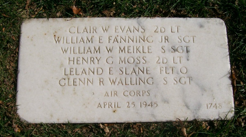 2Lt Evans was Killed in Action and is now buried in the Fort Scott National Cemetery, Fort Scott, Bourbon County, Kansas, USA.