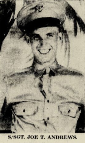 SSgt Andrews was among those who lost their lives in the crash and is now buried in the Ardennes American Cemetery and Memorial, Neuville-en-Condroz, Arrondissement de Liège, Liège, Belgium. Joe T. Andrew's name is inscribed on the Anstey Window Memorial in Panel 2 (center), on Butterfly 21, in the bottom right wing (section D).