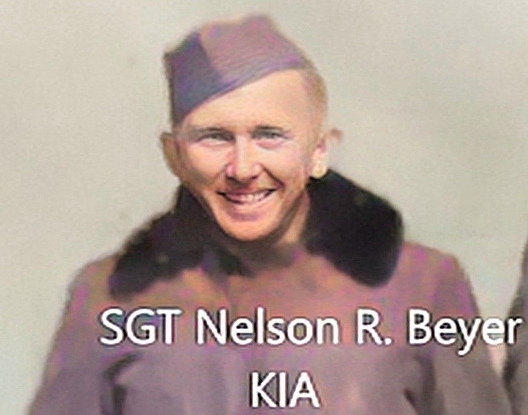 Nelson Russell Beyer was born on February 24, 1920, in Red Hill, Montgomery County, Pennsylvania. He was the son of John Abner Beyer and Katie M. Boyer Beyer. He served in the 601st Bomber Squadron, 398th Bomb Group, Heavy, as a Sergeant and Top Turret Gunner of B-17 #43-37889 nicknamed ''Black Widow'' during World War II.