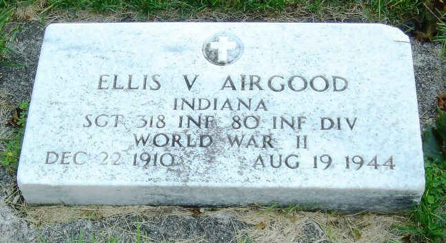 Sgt Airgood was Killed in Action on August 19, 1944, during the liberation of Argentan, France. He is now buried in the Fairview Cemetery, Servia, Wabash County, Indiana, USA.