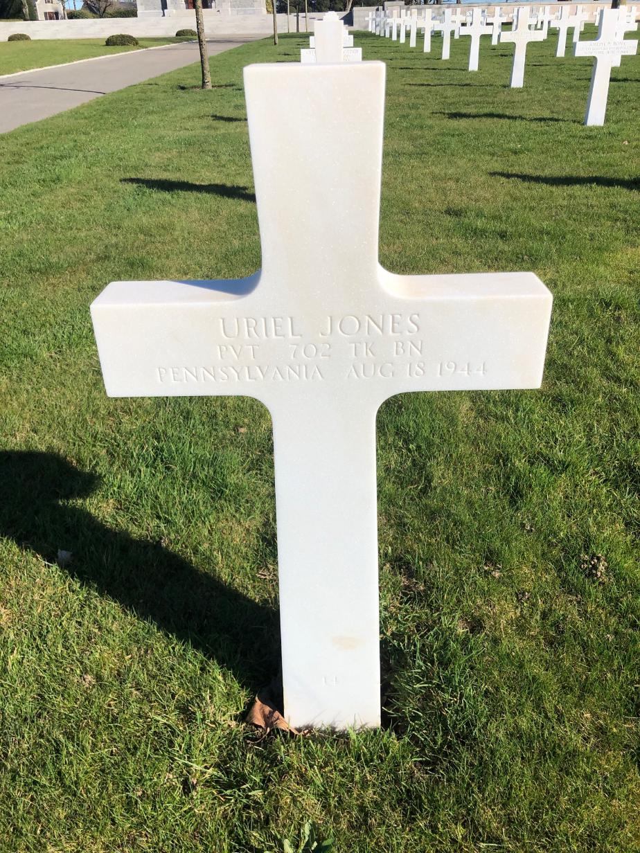 Uriel Jones was born on April 26, 1908, in Coaldale, Schuylkill County, Pennsylvania. He served in the 702nd Tank Battalion as a Private during World War II.