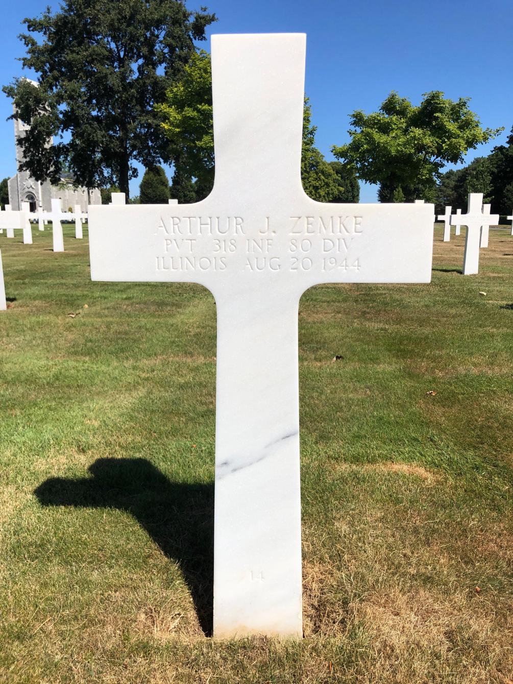 Pvt Zemke was Killed in Action on August 20, 1944, during the liberation of Argentan, France. He is now buried in the Brittany American Cemetery and Memorial, Saint-James, Departement de la Manche, Basse-Normandie, France.