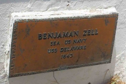 Benjaman Zell served in the US Navy as a Seaman and was assigned to the USS Delaware. He died on September 19, 1843, while stationed in or passing through Menorca during the period when the U.S. maintained a naval presence in the Mediterranean, as part of its early-to-mid 19th century Mediterranean Squadron. He is now buried in the Cementerio Anglo Americano, Maó-Mahón, Provincia de Islas Baleares, Baleares, Spain.Source of information: www.findagrave.com