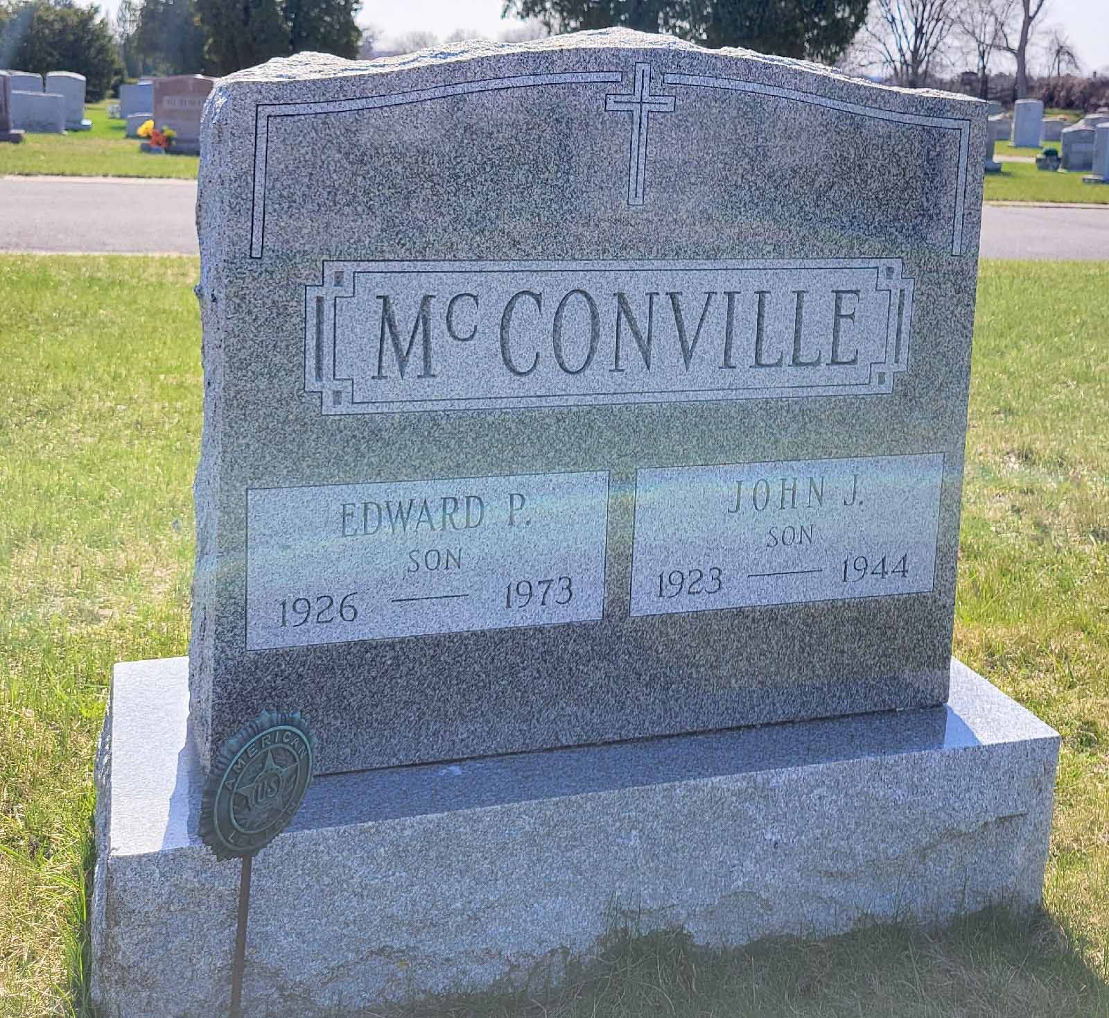 SSgt McConville was Killed in Action and is now buried in the Our Lady of Angels Cemetery, Colonie, Albany County, New York, USA.