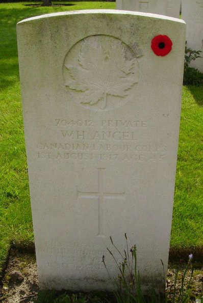 Pvt Angel died on August 1, 1917, in Belgium. He is now buried in the Duhallow ADS Cemetery, Ypres, Arrondissement Ieper, West Flanders, Belgium.Source of information: www.findagrave.com