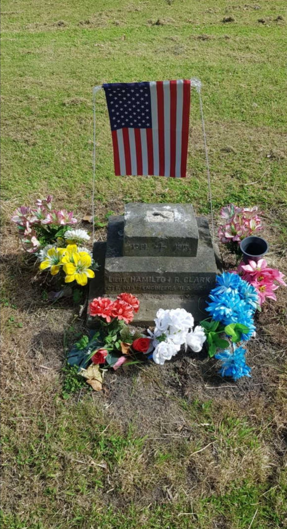 Hamilton R. Clark was born in 1891. He served in the 605th Engineers as a Second Lieutenant during World War I. He died on October 10, 1918, in England. He is now buried in the Everton Cemetery, Everton, Metropolitan Borough of Liverpool, Merseyside, England.