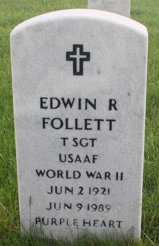 SSgt Follett was captured and held as a prisoner of war at Stalag Luft III in Sagan-Silesia, Bavaria. He ended his military service as a Technical Sergeant. He died on June 9, 1989, and is now buried in the Fort Snelling National Cemetery, Minneapolis, Hennepin County, Minnesota, USA.