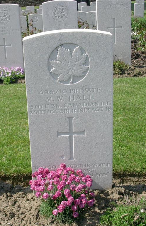 Pvt Hall died on October 26, 1917. He is now buried in the Passchendaele New British Cemetery, Passchendaele, Arrondissement Ieper, West Flanders, Belgium.