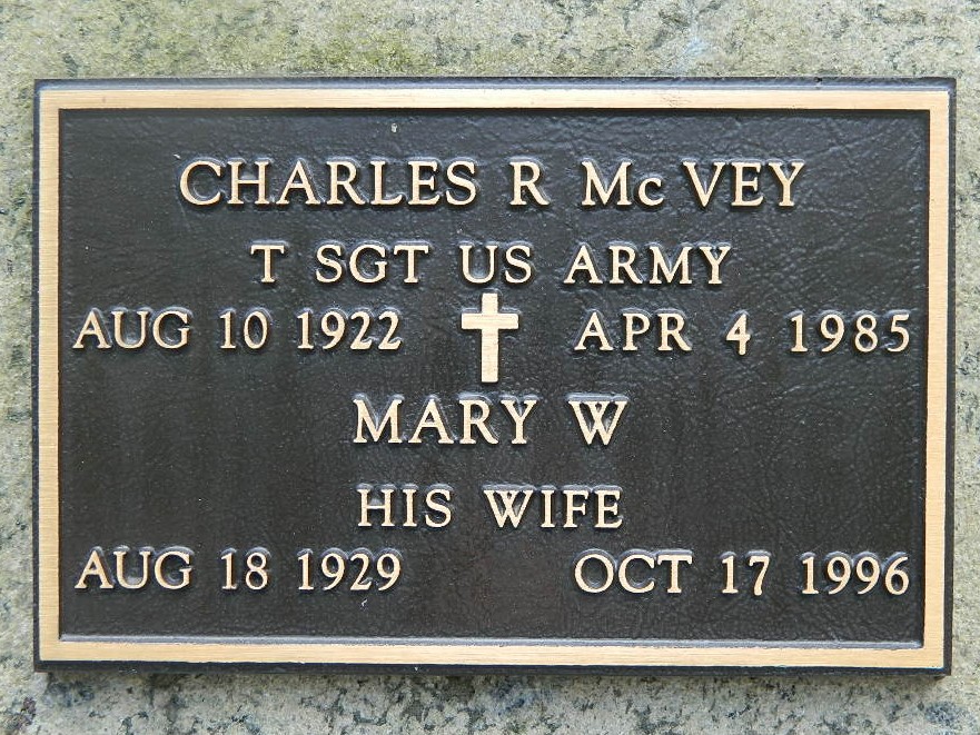 McVey was held at Stalag Luft I in Barth, Germany. After the war, he concluded his military service with the rank of Technical Sergeant. He died on April 4, 1985, and is now buried in the Calverton National Cemetery, Calverton, Suffolk County, New York, USA.