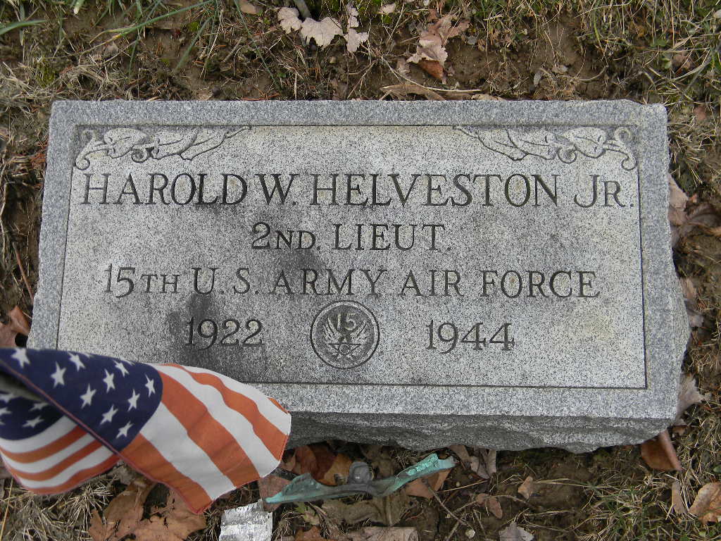 Harold William Helveston Jr. was born on August 16, 1923, in Philadelphia, Philadelphia County, Pennsylvania. He was the son of Harold William Helveston and Helen Jones Helveston. He served in the 20th Bombardment Squadron, 2nd Bomber Group, Heavy, as a Second Lieutenant and Co-Pilot of B-17 #42-31473 nicknamed 'My Baby' during World War II.