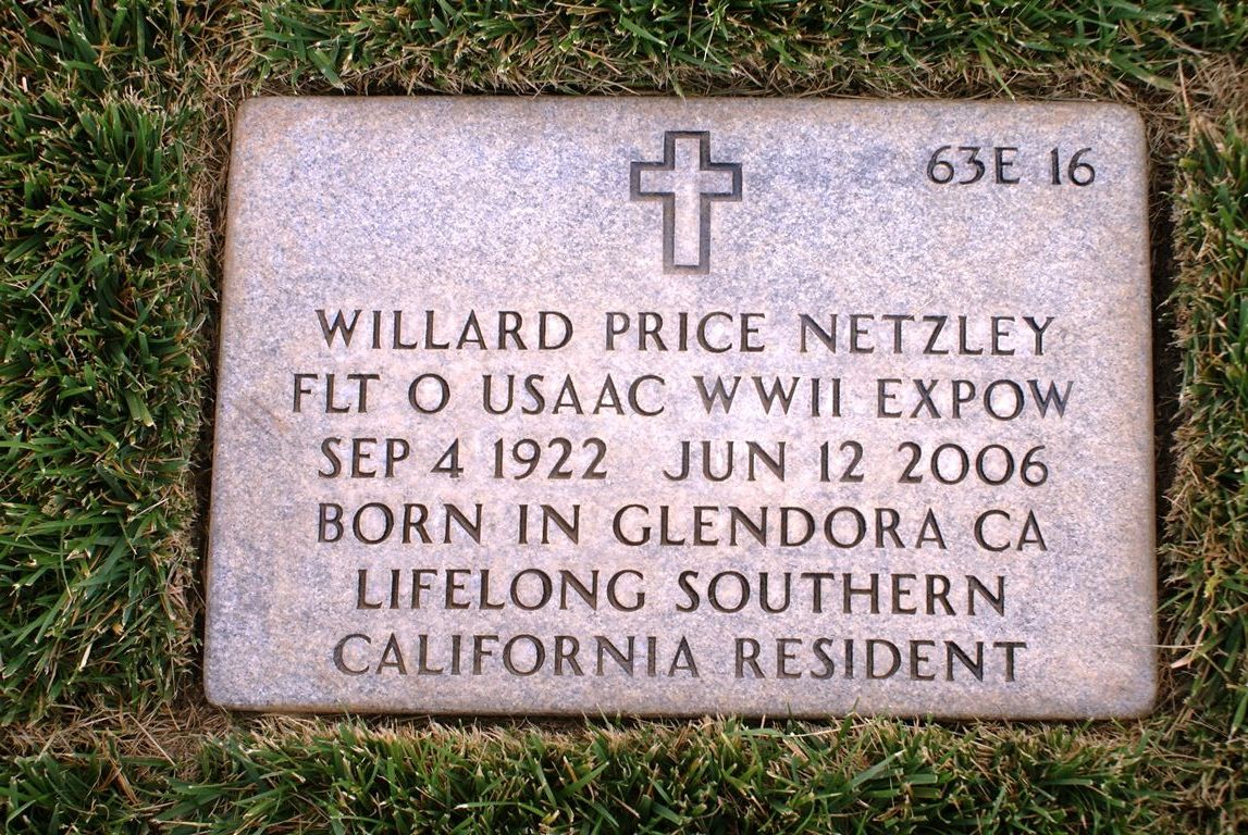 Willard P. Netzley was born on September 4, 1922, in Glendora, Los Angeles County, California. He was the son of Raymond M. Netzley and Florence Netzley. He was the husband of Cathryn Cordelia Thomas Netzley. He served in the 20th Bombardment Squadron, 2nd Bomber Group, Heavy, as a Flight Officer and Navigator of B-17 #42-31473 nicknamed 'My Baby' during World War II.