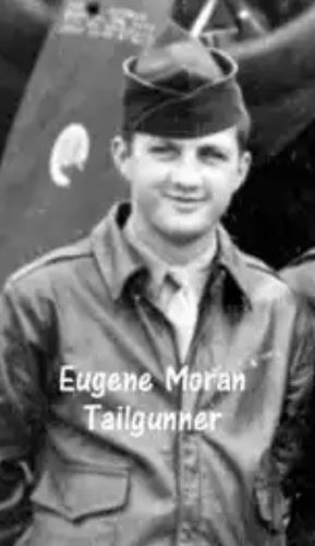 Moran was a Crawford County native and enlisted in the U.S. Army Air Corps in 1942. As a tail gunner in a B-17 Flying Fortress Aircraft, on his fifth bombing mission his plane encountered heavy fire near Bremen, Germany. The tail section of his plane was severely damaged and separated from his aircraft during combat. With a bullet-riddled parachute, Moran rode the tail section down at a rate of 100 feet per second, according to the narrative in a Veterans Lifetime Achievement Award he received in 2007. Moran sustained a crushed skull when the section he was riding hit a tree before crashing to the ground. He was saved by a Serbian doctor who was also a POW and preformed surgery to repair his head wounds.