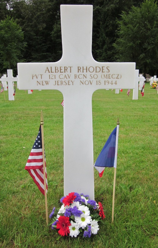 Pvt Rhodes was Killed in Action on November 18, 1944, during the liberation of Mouacourt, France. He is now buried in the Epinal American Cemetery and Memorial, Epinal, Departement des Vosges, Lorraine, France.