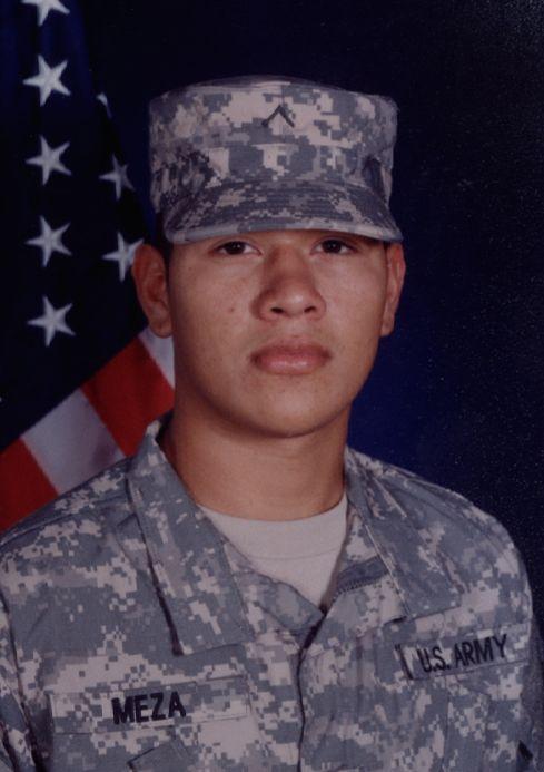 Gilberto Alejandro Meza was born on March 27, 1986, in Ventura, Ventura County, California. He was the son of Silvia Martinez. He entered Oxnard High School in 2000 before transferring to Channel Islands High School, Frontier High School, and later completing the Oxnard Union High School District’s GED program in 2004. He enlisted in the service in October 2005. He served as a Corporal and an Infantryman with G Company, 3d Squadron, 2d Stryker Cavalry Regiment, stationed in Vilseck, Germany, and was later deployed in Iraq.