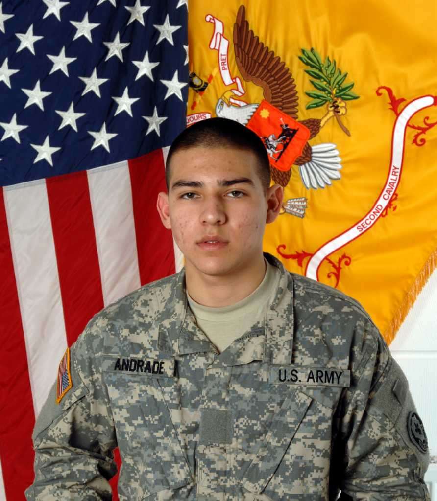 John Edward Andrade Sr. was born on July 3, 1991, in Texas. He was the son of Cesar and Juanita Andrade. He was married to Elizabeth M. Andrade. He graduated from Holmes High School and enlisted in the Army just a year earlier where he was assigned as a Stryker driver. He held the rank of Private First Class and served as an Infantryman with I Company, 3d Squadron, 2d Stryker Cavalry Regiment, stationed in Vilseck, Germany. His unit was deployed to Afghanistan in June of 2010, in support of Operation Enduring Freedom.