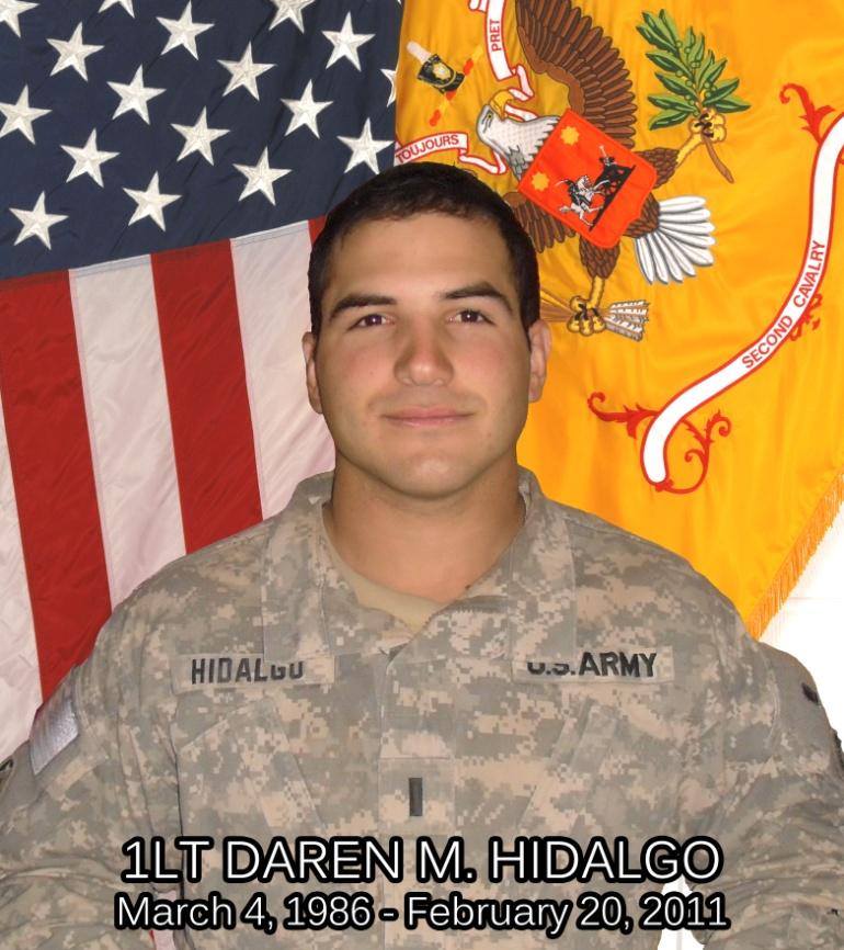 Daren Miguel Hidalgo was born on March 4, 1986, in Waukesha, Wisconsin. He was the son of Jorge and Andrea Hidalgo. After graduating from Dallastown Area High School in Pennsylvania in 2005, Daren went on to attend the United States Military Academy at West Point, graduating in 2009. He completed additional training before deploying overseas. He held the rank of First Lieutenant and served as an 11A Infantry Officer with G Company, 3d Squadron, 2d Stryker Cavalry Regiment, stationed in Vilseck, Germany, and was later deployed to Afghanistan.