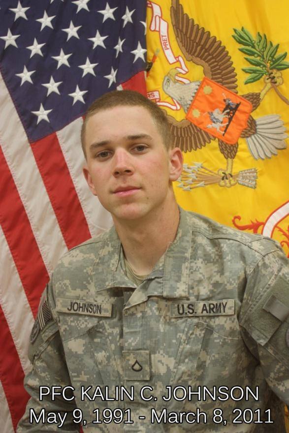 Kalin Christopher Lee Johnson was born on May 9, 1991, in Charleston, Charleston County, South Carolina. He was the son of Brenton Christopher Johnson and Ronda Kay Johnson. He graduated from Lexington High School and enlisted in the service in 2009. He served in G Company, 3d Squadron, 2d Stryker Cavalry Regiment, as a Private First Class stationed in Vilseck, Germany, and was later deployed in Afghanistan.