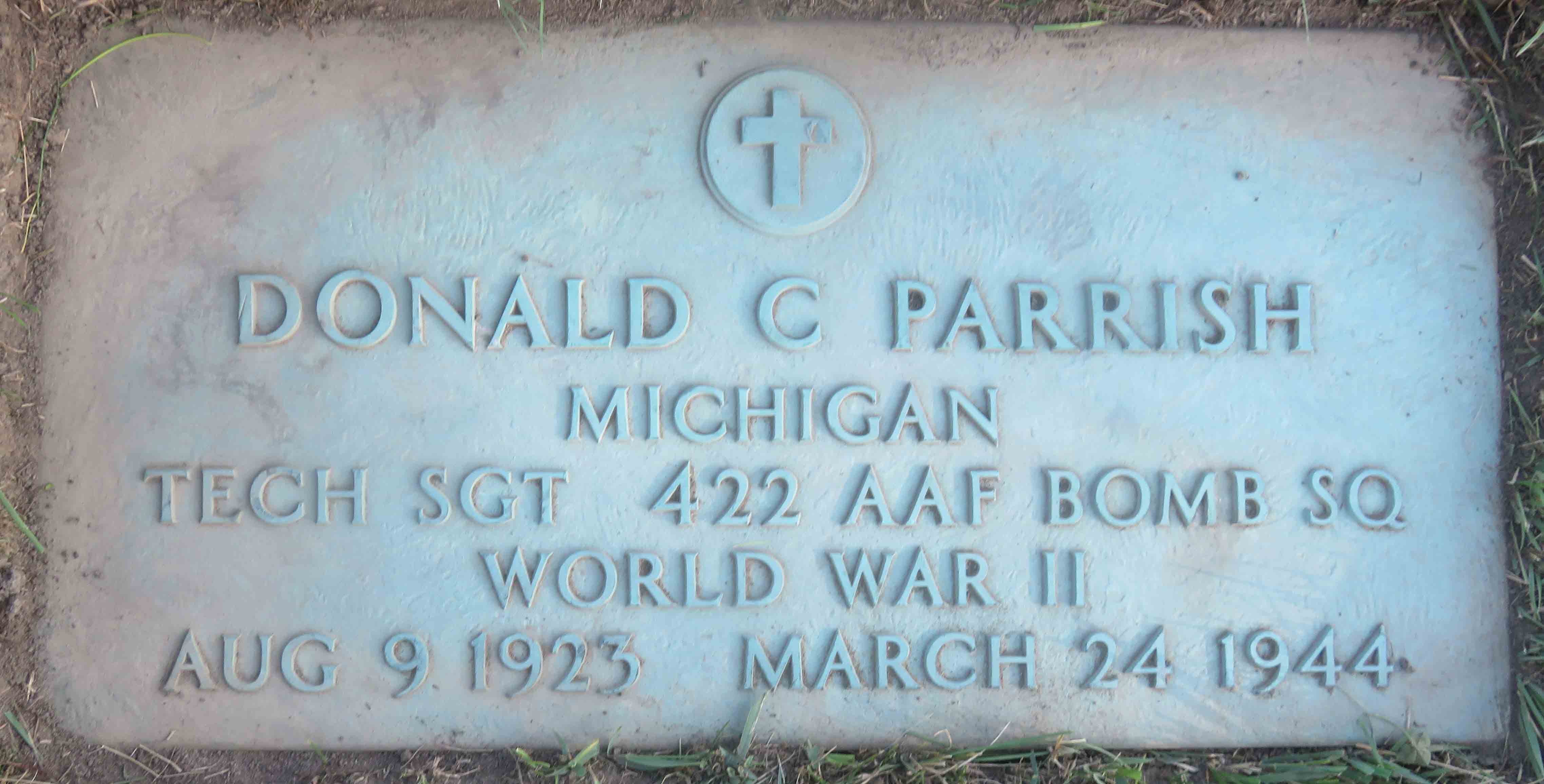 TSgt Parrish was Killed in Action and is now buried in the White Chapel Memorial Park Cemetery, Troy, Oakland County, Michigan, USA.