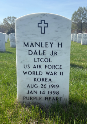 Manley Hovey Dale Jr. was born on August 26, 1919, in Renville, Renville County, Minnesota. He was the son of Manley Humphrey Dale and Mathilda Agnora "Tillie" Hovey Dale. He was married to Jewel Elaine Butts Dale. He served in the 775th Bomb Squadron, 463rd Bomber Group, Heavy, as a Second Lieutenant and Co-Pilot of B-17 #42-31685 nicknamed 'Pete's Playhouse' during World War II.