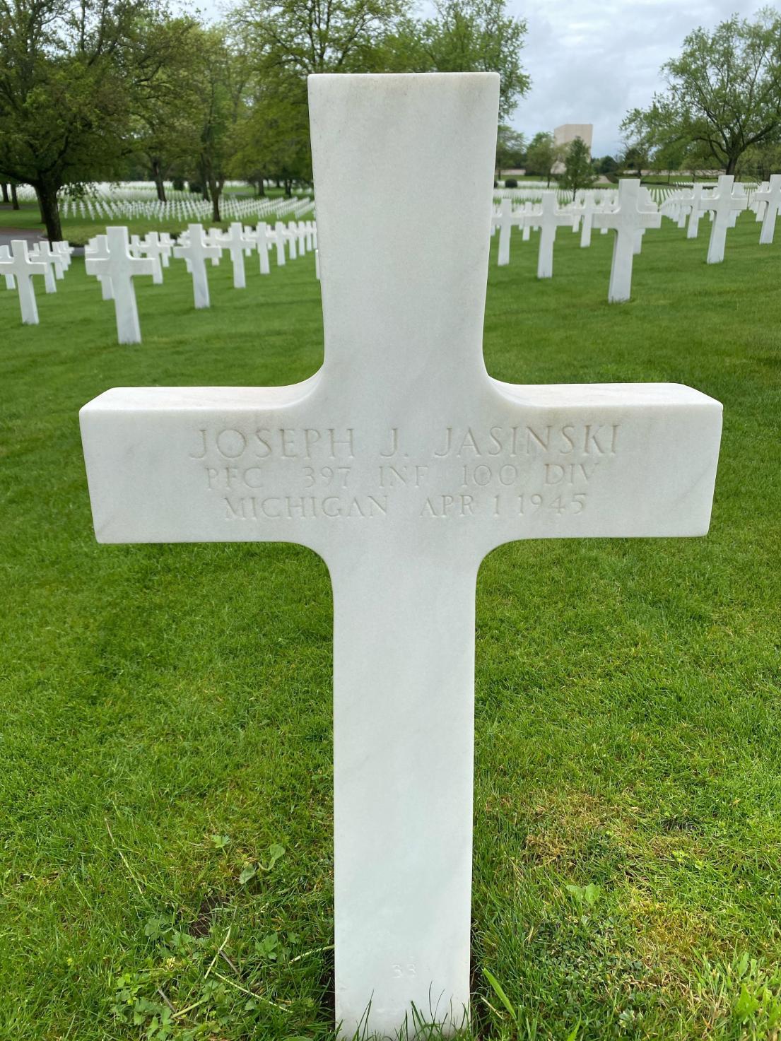 PFC Jasinski died on April 1, 1945, in Germany. He is now buried in the Lorraine American Cemetery and Memorial, Saint-Avold, Département de la Moselle, Lorraine, France.