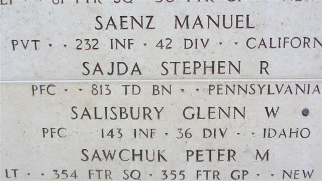 Peter M. Sawchuk was born on 1918. He resided in Erie County, New York prior to the war. He enlisted in the Army on March 3, 1941, in Buffalo, New York. He was noted as being employed as a structural and ornamental metal worker and also as Single, without dependents. He served as a Second Lieutenant & Pilot in the 354th Fighter Squadron, 355th Fighter Group, U.S. Army Air Forces during World War II. On July 24, 1944, he was killed in action at the helm of the P -51C (42-103334) WR "Martin's Gloria", shot down during the strafing of the Lechfield aerodrome. His Mustang crashed a few kilometers from the airfield. Peter was declared "Missing In Action" when his P-51 did not return to base after a mission over Germany during the war.