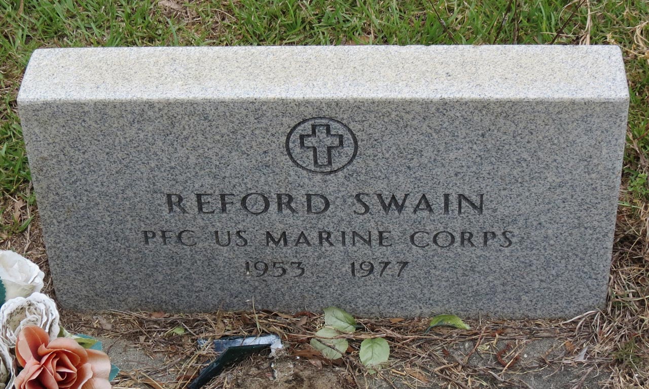 PFC Swain was born on January 14, 1953, in Newville, Alabama. He enlisted in the US Marine Corps on September 25, 1974 and was assigned in LSU-34, USS Trenton. He died on January 17, 1977, at the age of 23, in the Liberty launch boat (LCM-6) accident as he was aboard. Their boat struck a freighter and capsized during the USS Trenton and USS Guam visitation in Barcelona, Spain. He is now buried in the Mount Olive Baptist Church Cemetery, Newville, Henry County, Alabama, USA. Note: His headstone was misspelled as Reford.