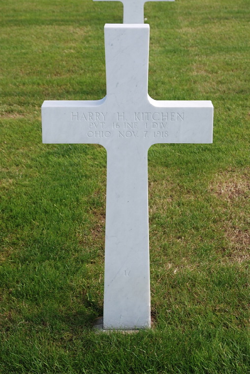 When Harry Herman Kitchen was born on July 10, 1893, in Continental, Ohio, his father, Albert, was 25 and his mother, Rebecca, was 26. He had three brothers and two sisters. He entered the military service in Ohio. He served in the U.S. Army during World War I as a Private in A Company, 16th Infantry Regiment, 1st Infantry Division. He died on November 07, 1918 and is now buried in Meuse-Argonne American Cemetery and Memorial, Romagne-sous-Montfaucon, Departement de la Meuse, Lorraine, France.