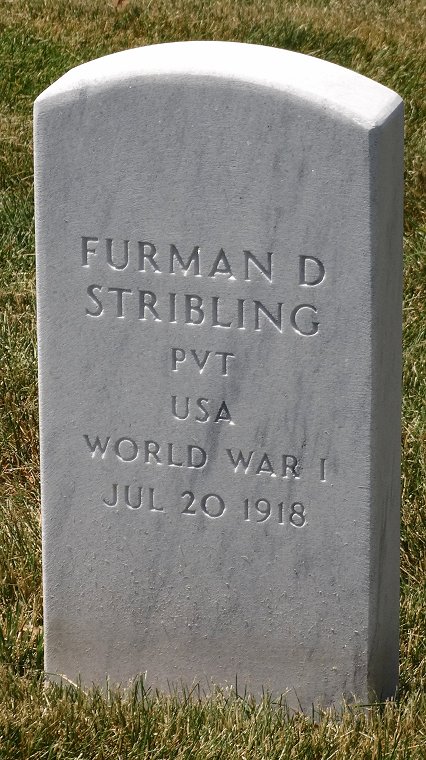 Furman D. Stribling died while serving in the US Army during World War I as a Private in Company I, 16th Infantry Regiment, 1st Infantry Division.