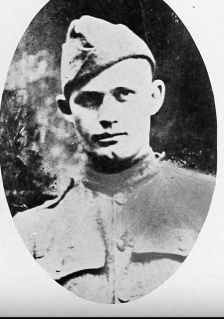 Marvin E. Hanson was born on April 15, 1897. He served in the U.S. Army during World War I as a Private in Company E, 18th Infantry Regiment, 1st Infantry Division. He died from his wounds received in battle on July 27, 1918 in France (at the age of 21) and is now buried in Grafton Lutheran Cemetery, Grafton, Walsh County, North Dakota, USA. His surname is inscribed on the Buzancy monument as HANSEN.
