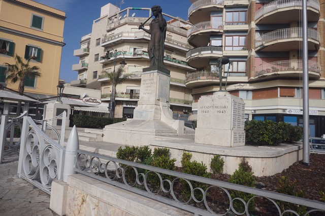 Located in the town center of Nettuno, near the historic medieval center (Borgo Medievale) on the cities’ grand Monument for the Fallen (Monumento ai Caduti) of World War 1 and 2. Nettuno is located about 50 kilometers south of Rome and is immediately adjacent to the city of Anzio. Nettuno is also the location of the Sicily -Rome American Cemetery. Nettuno is the home of Italian baseball - learned from the US military during World War 2!