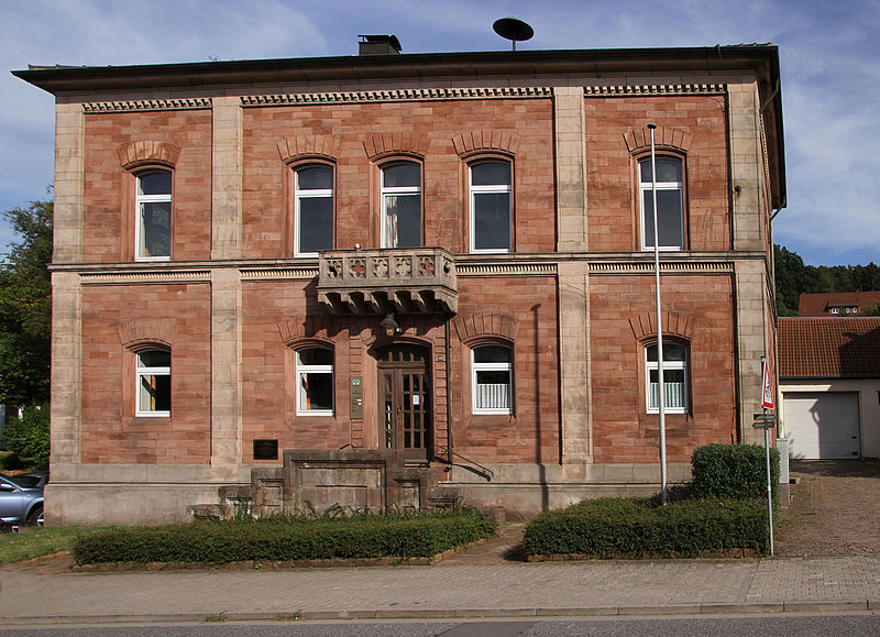 At the city hall. Located at the intersection of the Hauptstraße and Neue street.