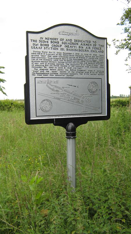 The site contains a memorial to the 323rd Bomber Squadron, 91st Bomber Group, Heavy who were stationed at Bassingbourn during the Second World War.