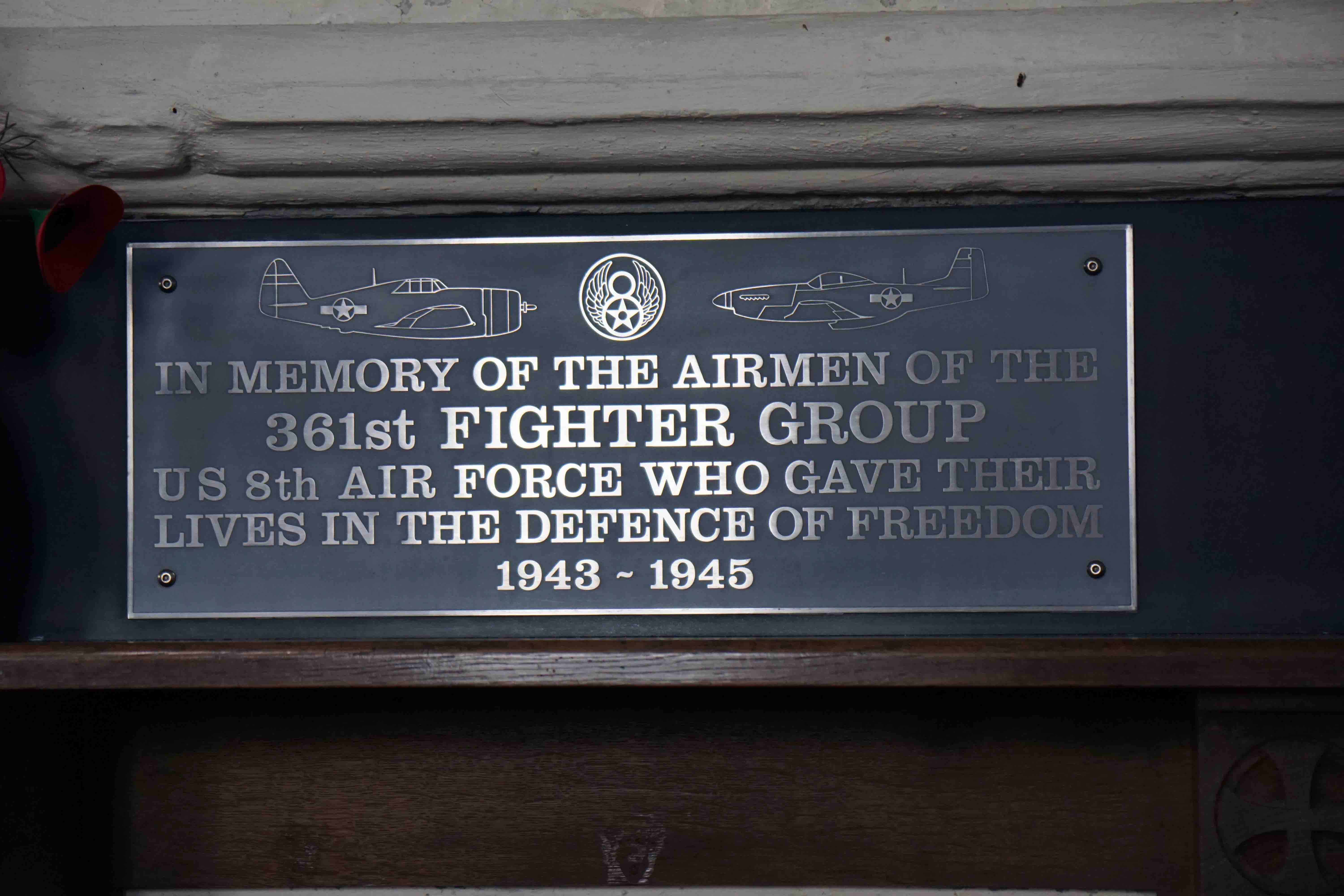The church holds a plaque to the 361st Fighter Group of the 8th U.S. Air Force.
