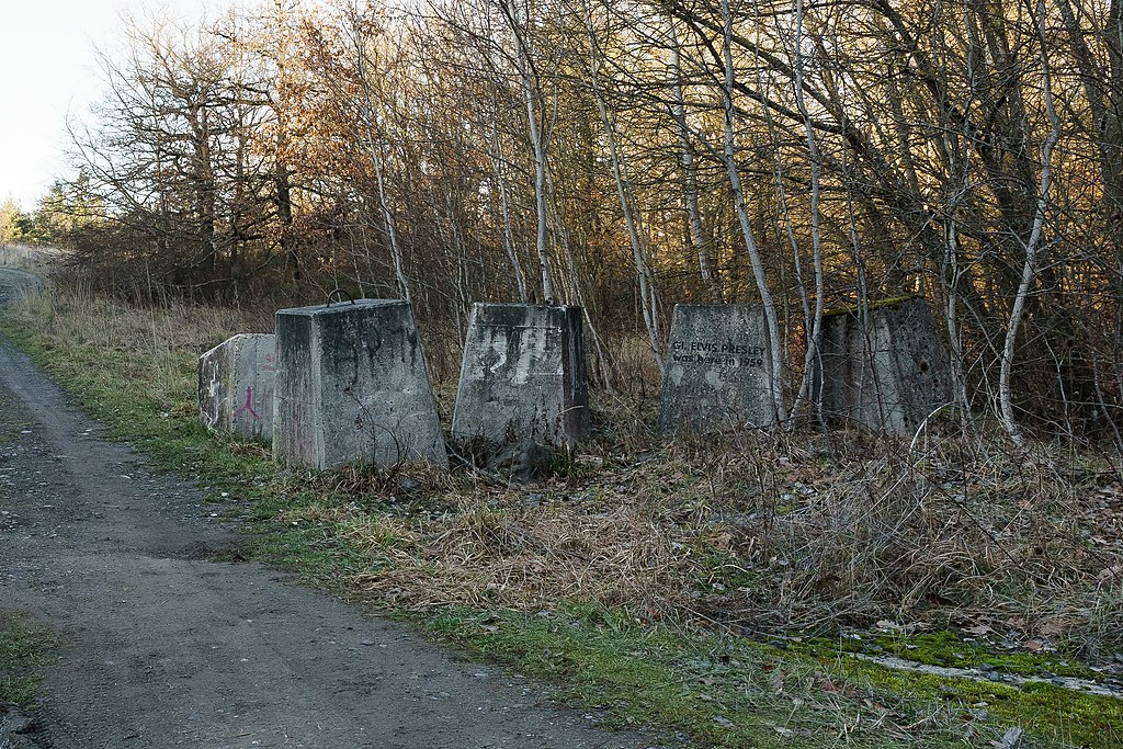 The site includes one stone or tank barrier block with an inscription remembering Elvis Presley’s time spent training in this area in 1959.