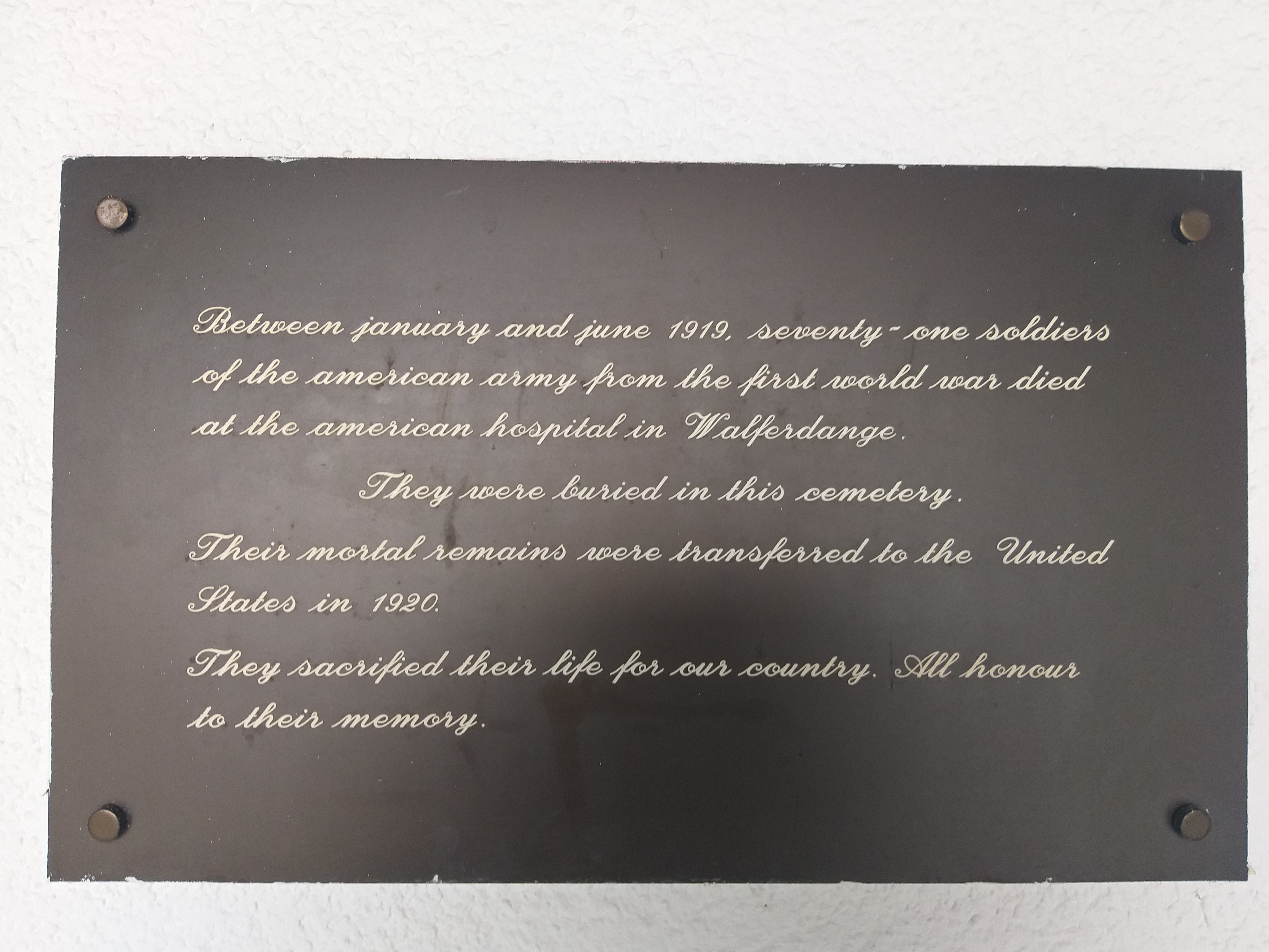 The town cemetery contains a plaque to fallen Americans in WWI.
