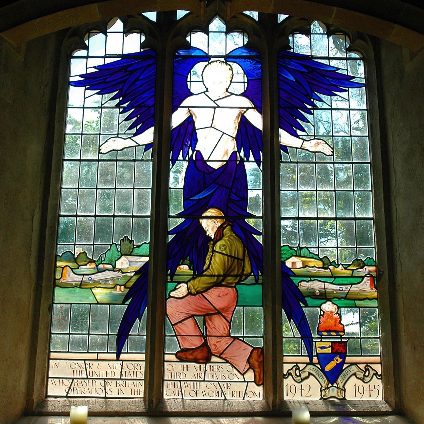 The site includes one memorial, a stained glass window, remembering the 3rd Air Division of the 8th Air Force in WW2.
