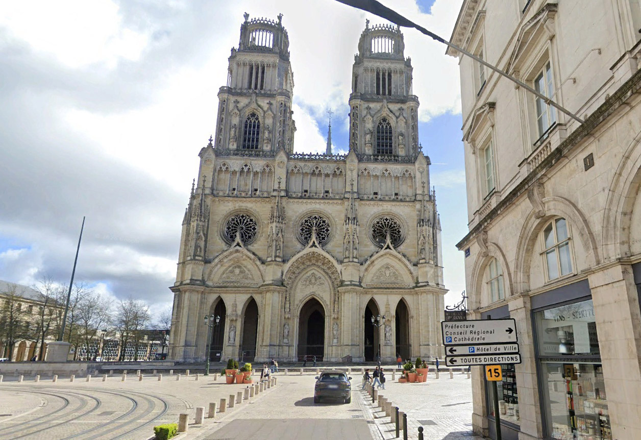 The church is situated in the center of Orléans about 400 meters south of the town hall. The main entrance of the Cathédrale Sainte-Croix d'Orléans is located on Place Sainte-Croix. This square is directly in front of the west façade of the cathedral.