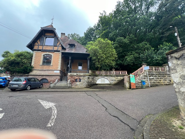 The site is located at the entry steps to the hilltop Chateau (castle) Schlossberg in Forbach, France. The site is located just off the traffic circle at the intersection of Rue Jean Muller and Rue du Schlossberg very close to the Forbach main Church, Saint-Rémi. The site is built into the steps leading up to the chateau.