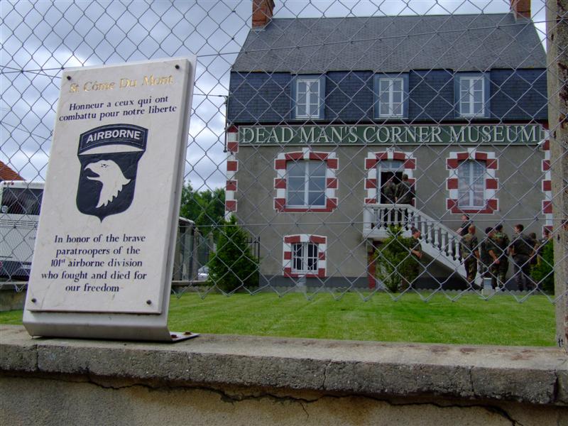 Outside the museum is a plaque commemorating the paratroopers of the 101st US Airborne Division who died during the liberation of this town in World War II.