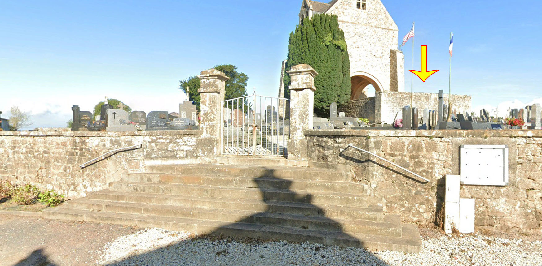 The church is located in the commune center about 900 meters northwest of the town. The entrance to what was then a church and now a memorial and cemetery is located at the junction of two streets which have the same name as D389E2/ Place de la Libération.