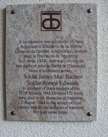Inside the building is a plaque commemorating Sergeant Robert Edwards and Private James MacRacken of the 357th Infantry Regiment, 90th Infantry Division who died during the liberation of the town in World War II.