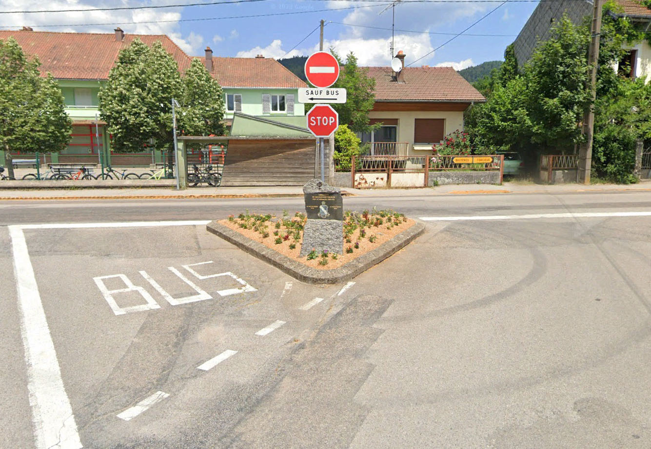 The site is situated in the town center about 220 meters southeast of the Granges-Aumontzey town hall, at the Rue P. Ancel Seitz and Rue 14 Novembre 1944 triangular intersection.