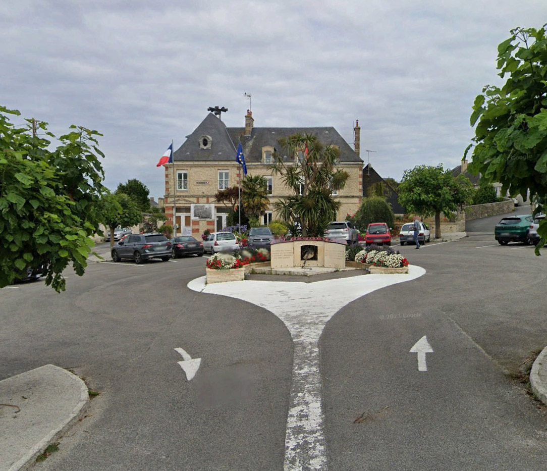 In front of the town hall is a monument commemorating American Rangers who fought on D-Day landings in the nearby towns during World War II.
